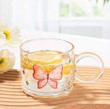 1. La tazza di vetro a farfalla dell'orecchio grande può contenere latte, caffè, varie bevande di succo e persino acqua bollita ordinaria