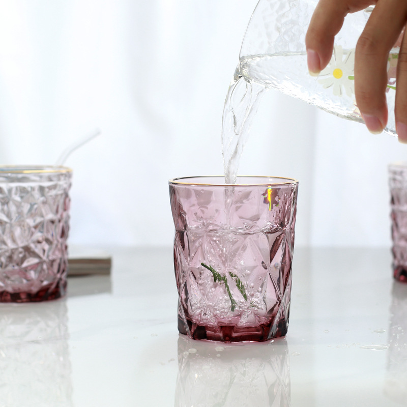 Il vetro trasparente ha una struttura martellata che rende le persone incapaci di fare a meno di toccarlo ancora e ancora. Osservandolo da diverse angolazioni, puoi anche apprezzarne le diverse texture e il luccichio alla luce del sole. La bocca della tazza è un cerchio di linee dorate, semplice ma lussuoso allo stesso tempo, che gli conferisce un senso della moda leggero e lussuoso. La tazza nel suo insieme adotta la tecnologia del martellamento, che ha un'eccellente sensazione al tatto ed è anche efficace nel prevenire lo scivolamento. Anche la bocca della tazza è stata lucidata, non presenta sbavature, è liscia e si adatta alla forma delle nostre labbra. Il fondo della tazza è ispessito per aumentare l'attrito ed evitare che la tazza si ribalti, così puoi usarla in tutta tranquillità. Tutte le tazze sono progettate con un'ampia apertura per essere facilmente raggiungibili e pulite. Allo stesso tempo, la tazza non assorbirà i sapori e non conserverà l'odore dell'ultima volta che è stata riempita. INTOWALK Il produttore cinese di vetro di origine