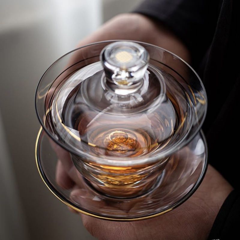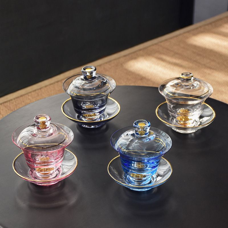 Ciotola con coperchio in vetro cristallo blu lamina oro