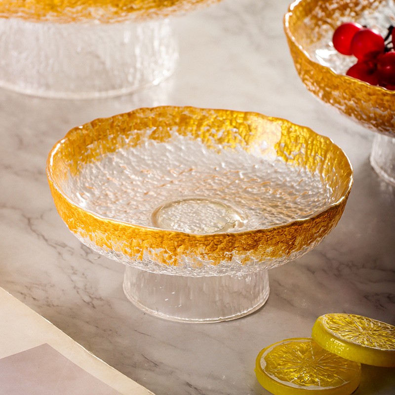 Marca: INTOWALK Nome del prodotto: piatto da frutta alto in vetro dorato Artigianato: lavorazione artigianale Materiale: vetro di alta qualità