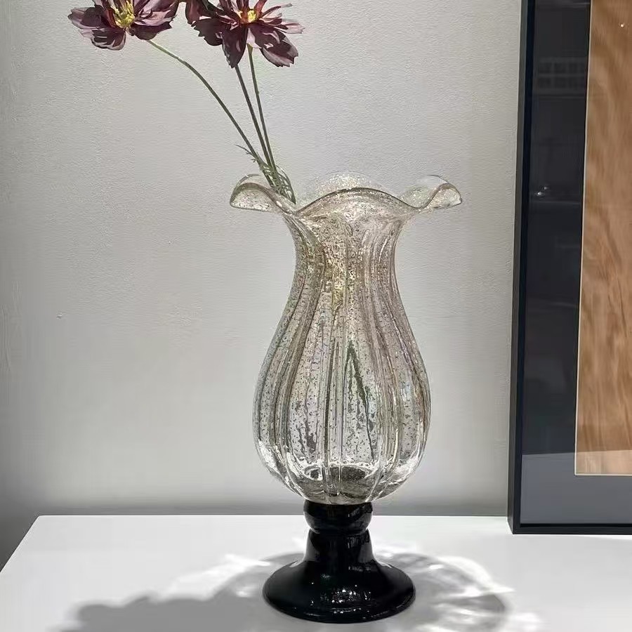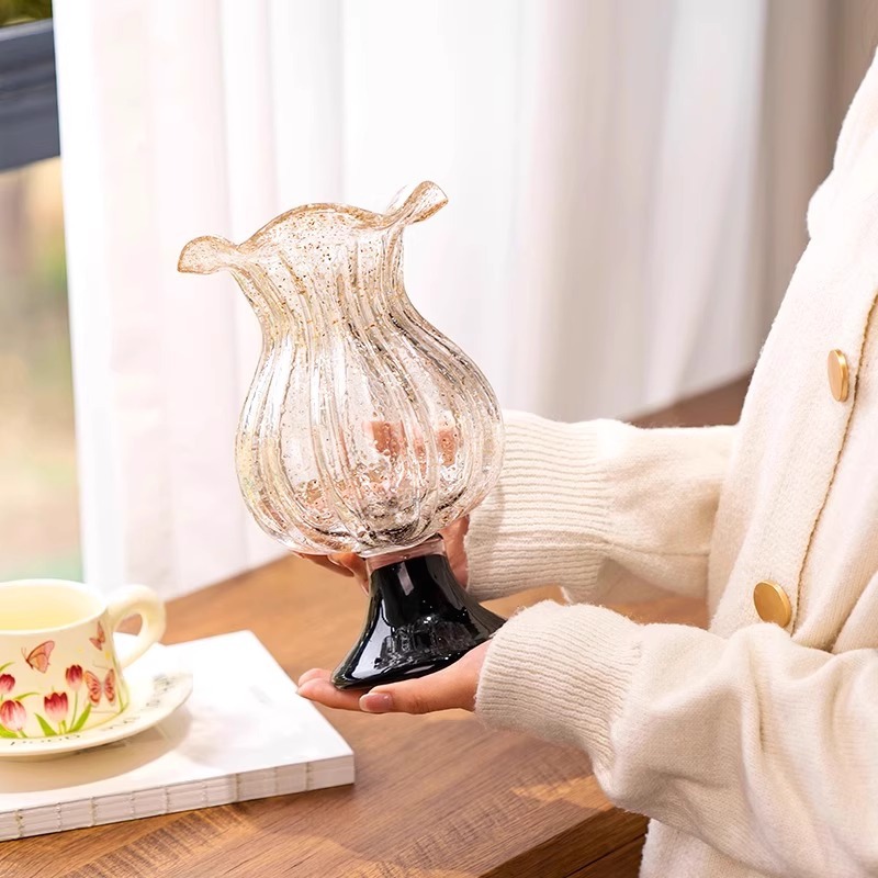 Nome del prodotto: vaso alto vintage in vetro di lusso cosparso di oro