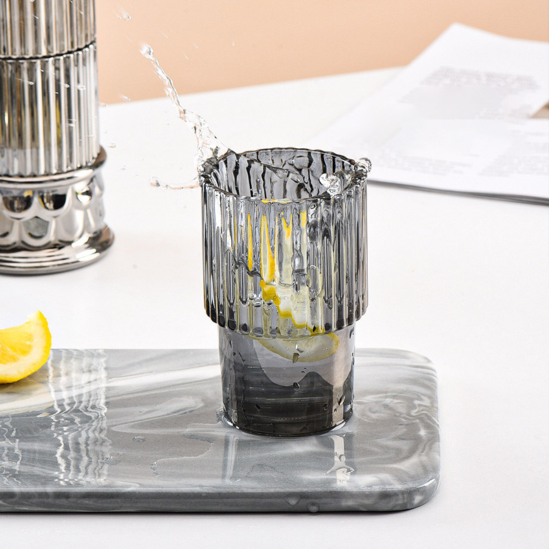La trama delle tazze impilabili in vetro con colonna romana è un motivo verticale giapponese, che è più strutturato del vetro trasparente e aggiunge un senso di peso. È molto adatto da regalare agli amici a cui piacciono i prodotti in vetro strutturato. Il bordo del vetro trasparente di alta qualità è liscio. Rotondo e lucidato artificialmente, è delicato, umido e privo di bave, confortevole al tatto e si adatta alla pelle e alle labbra. Il vetro a strisce verticali strutturato può aggiungere un'esperienza visiva diversa al tuo caffè e latte. Aggiungi latte e cubetti di ghiaccio in una caratteristica tazza da caffè in vetro, quindi aggiungi un po' di caffè e il delizioso tè pomeridiano è completato. INTOWALK Produttore cinese di sorgenti in vetro!