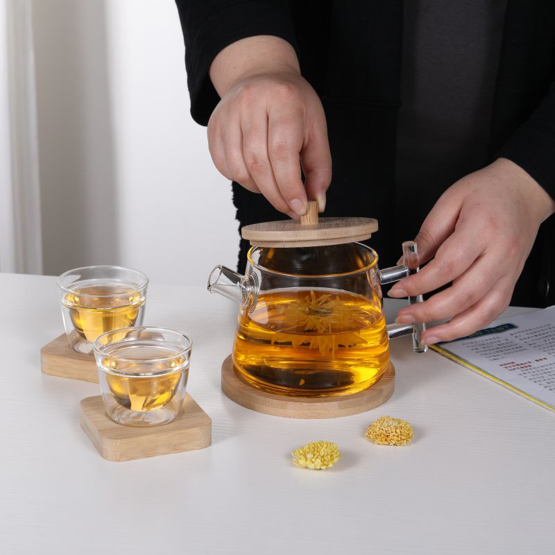 Questo set da tè in vetro con pallet in legno è realizzato in vetro borosilicato di alta qualità, resistente al calore e al freddo e adatto a contenere bevande calde e fredde. Il bollitore in vetro borosilicato è adatto al piano cottura, al microonde e alla lavastoviglie ed è privo di BPA e piombo. Progettato con un filtro rimovibile in acciaio inossidabile per alimenti, sembra piccolo ma è molto pratico e può impedire la fuoriuscita di frammenti di tè e frutta. Ottimo per preparare bevande/tè freddo/tè alla frutta fatti in casa. Questo set da tè con bollitore in vetro può essere riscaldato rapidamente direttamente fino all'ebollizione su qualsiasi fornello a gas, fiamma libera o elettrica senza scoppiare e non scoppierà se versato in acqua bollente dopo essere stato completamente congelato in frigorifero. È anche lo scalda tè perfetto per preparare tè verde, tisane, caffè, latte o altre bevande a tua scelta. Questa caraffa in vetro con filtro è realizzata in vetro borosilicato di alta qualità, resistente alle alte temperature. Puoi metterlo sul fornello a una temperatura bassa per assicurarti di avere sempre una tazza di tè calda. Questa teiera in vetro trasparente può essere utilizzata anche come teiera in vetro. L'uscita dell'acqua è dotata di un filtro rimovibile in acciaio inossidabile per alimenti per evitare fuoriuscite di tè e succhi di frutta. Puoi preparare limonata, succo d'arancia, succo di frutta e altre bevande. INTOWALK Produttore cinese di vetro di origine